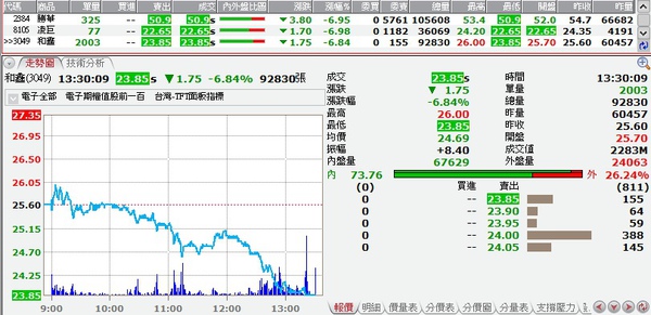 近期漲多的觸控面板族群 勝華, 凌巨, 合鑫這三檔股票今日全數跌停, 線形已經對多頭不利