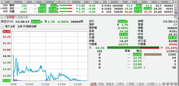 凌巨(8105)也跟著打入跌停,台股歡慶高漲,觸控面板卻是愁雲慘霧。